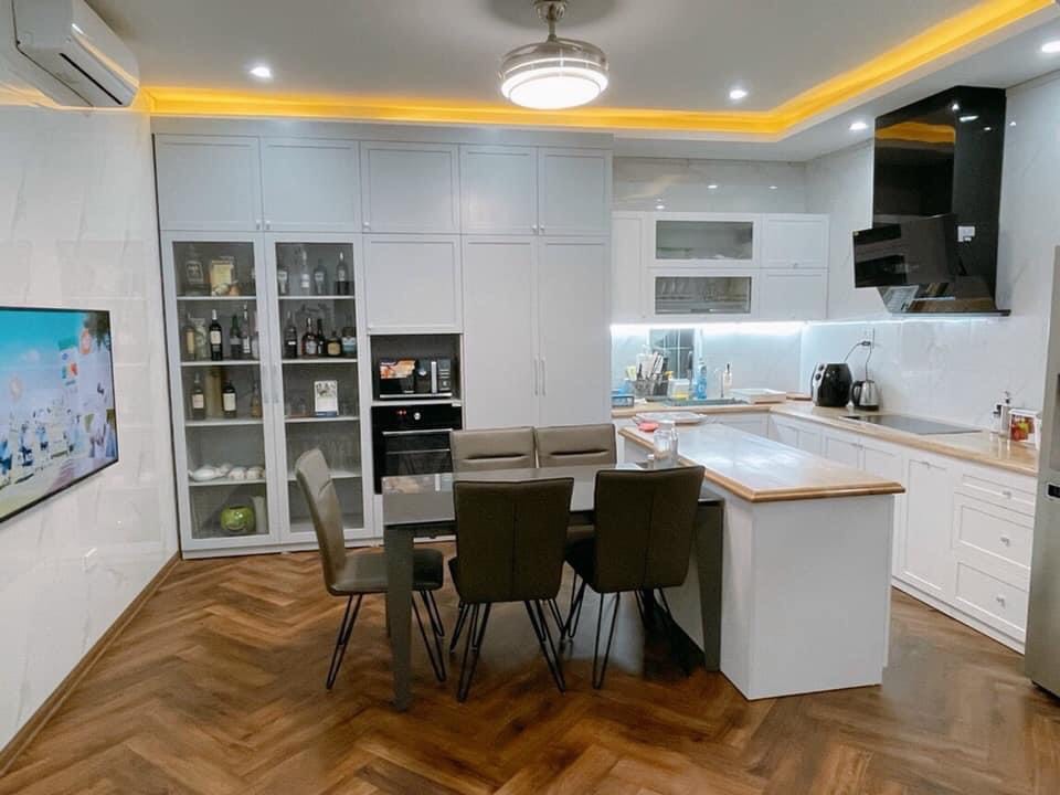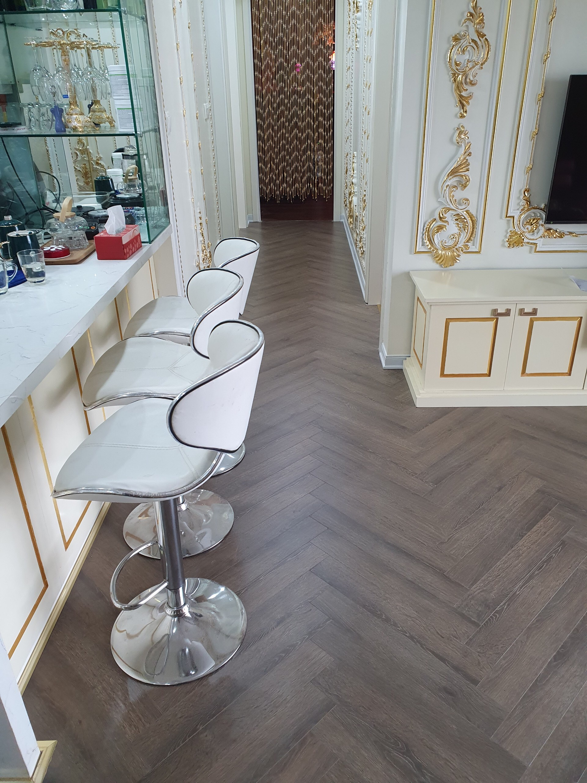 – Quá trình thi công sàn gỗ xương cá rất công phụ, đòi hỏi đội ngũ thợ phải có tay nghề cao và tỉ mỉ. Khi việc thi công đúng tiêu chuẩn thì sàn gỗ mới đảm bảo các góc cạnh được ốp chặt chẽ và sàn nhà phẳng, không bong.