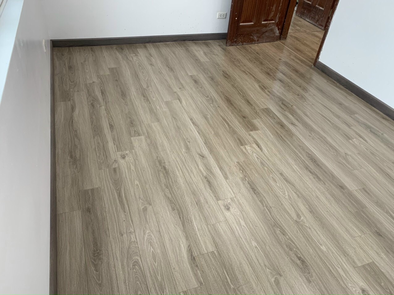 - Kích thước tấm gỗ: dày 12mm x rộng 130mm x dài 1225mm, kiểu bề mặt bóng lụa, hèm V- groove sơn cạnh với những đường mạch gỗ nhỏ tạo nên nét đẹp thẩm mỹ cao. Hệ hèm khóa cơ động Unilin có phủ sáp nến chống ẩm.