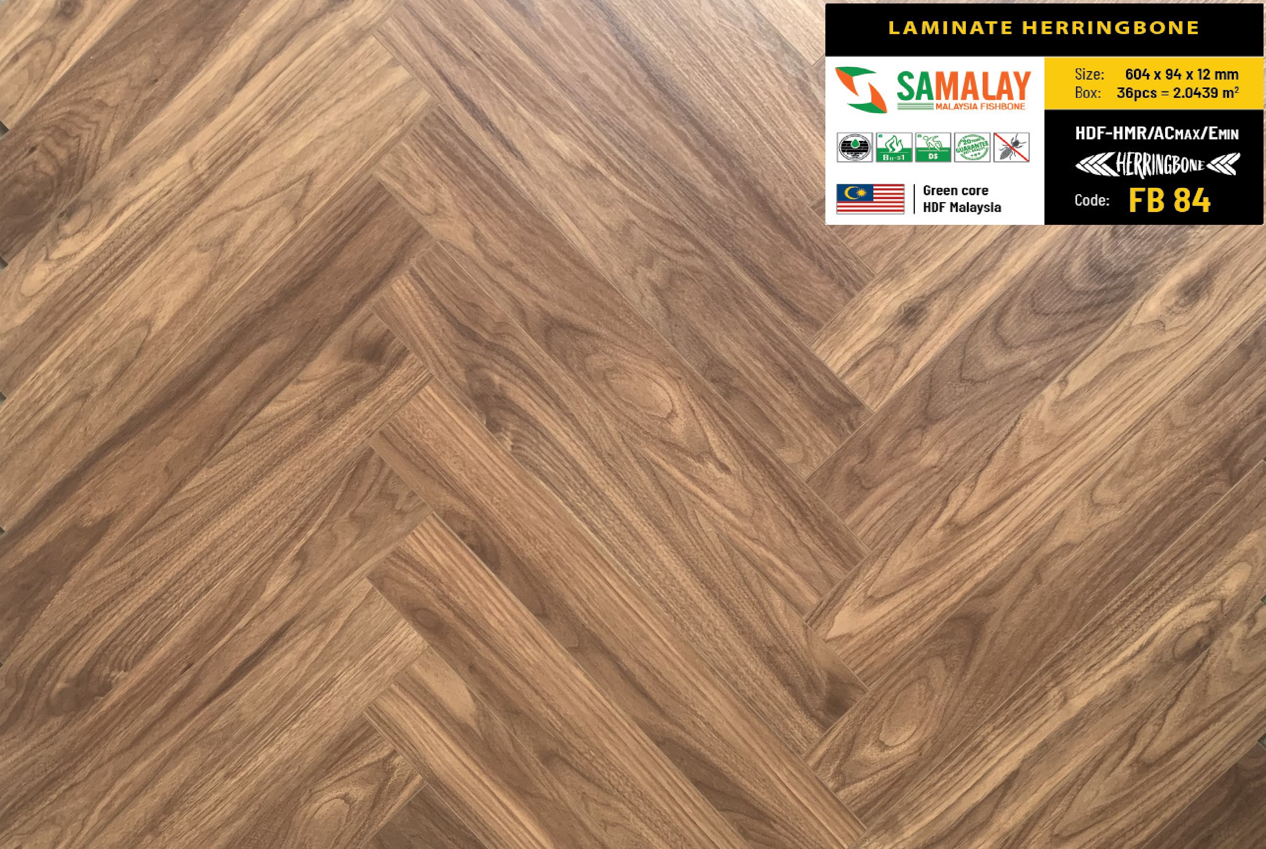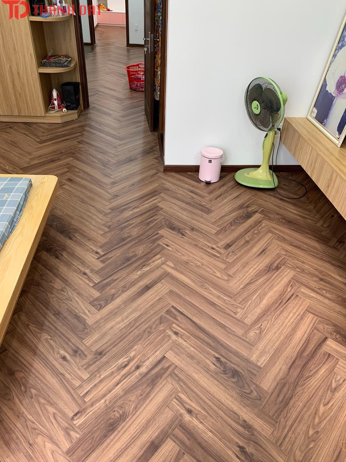 Sàn gỗ xương cá Samalay FB84 với tone màu hạt dẻ trầm hiện đại, vân giấy hiện đại, là màu sắc đại diện cho giới trẻ cá tính hiện nay.