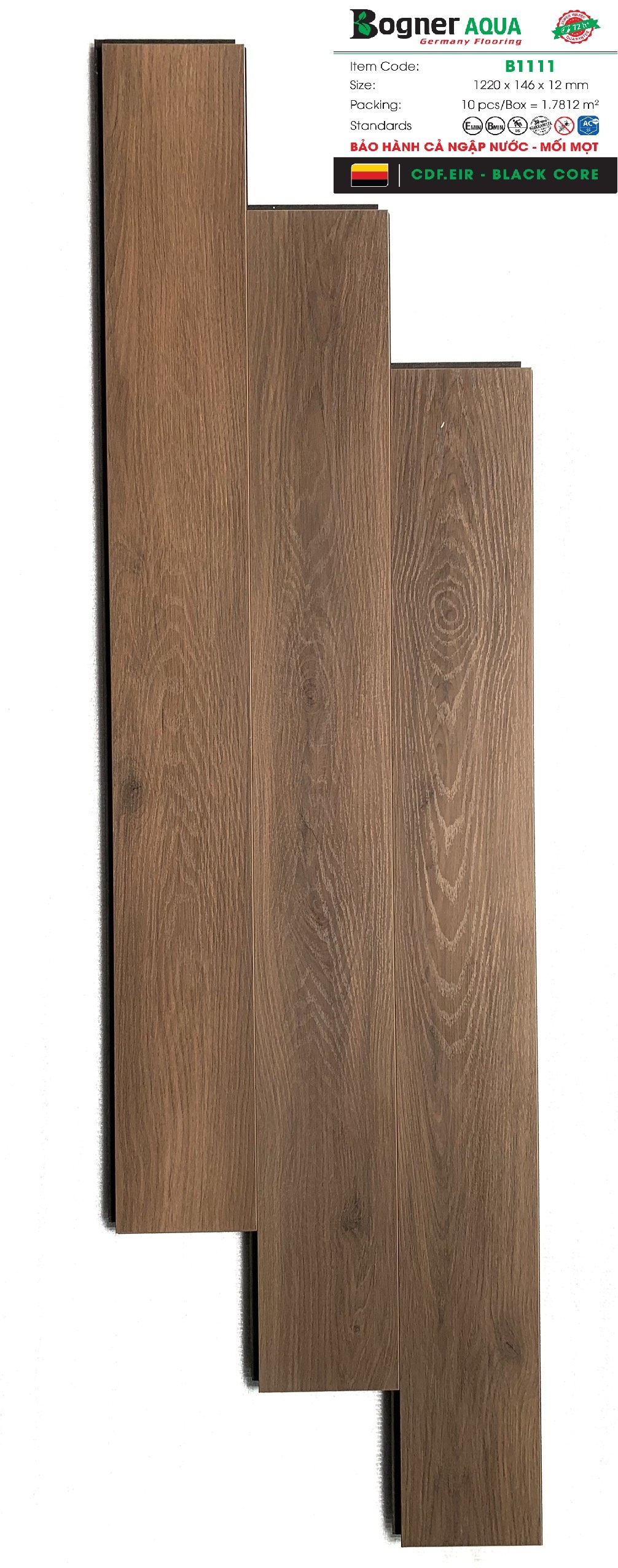 • Độ Dày:CDF- HDF đen  tỉ trọng 960kg/m3, dày 12mm