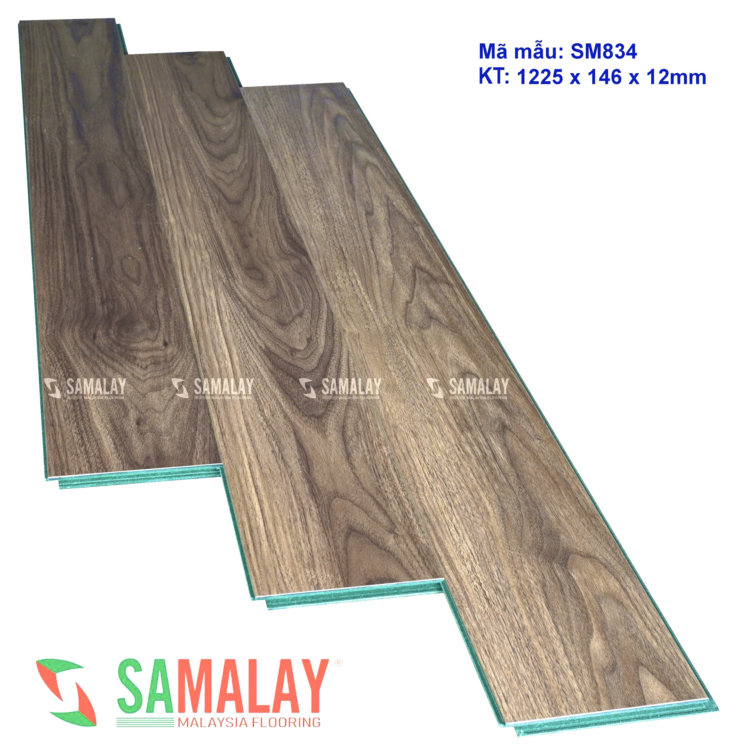 Sàn gỗ SAMALAY SM834 với sắc màu hạt dẻ trầm nhưng lên sàn xen lẫn nhau những khoảng sáng tối cách điệu làm không gian căn nhà sang trọng hơn hẳn. Chất liệu giấy vân gỗ với 4 tông màu trong 1 – công nghệ ép giấy hiện đại nhất của châu Âu mang lại sự mới lạ và hiện đại cho nội thất căn nhà. Màu trầm nhưng không tối nên có thể thích hợp với nhiều không gian nội thất, Đây là một trong những tông màu hot nhất năm 2019.